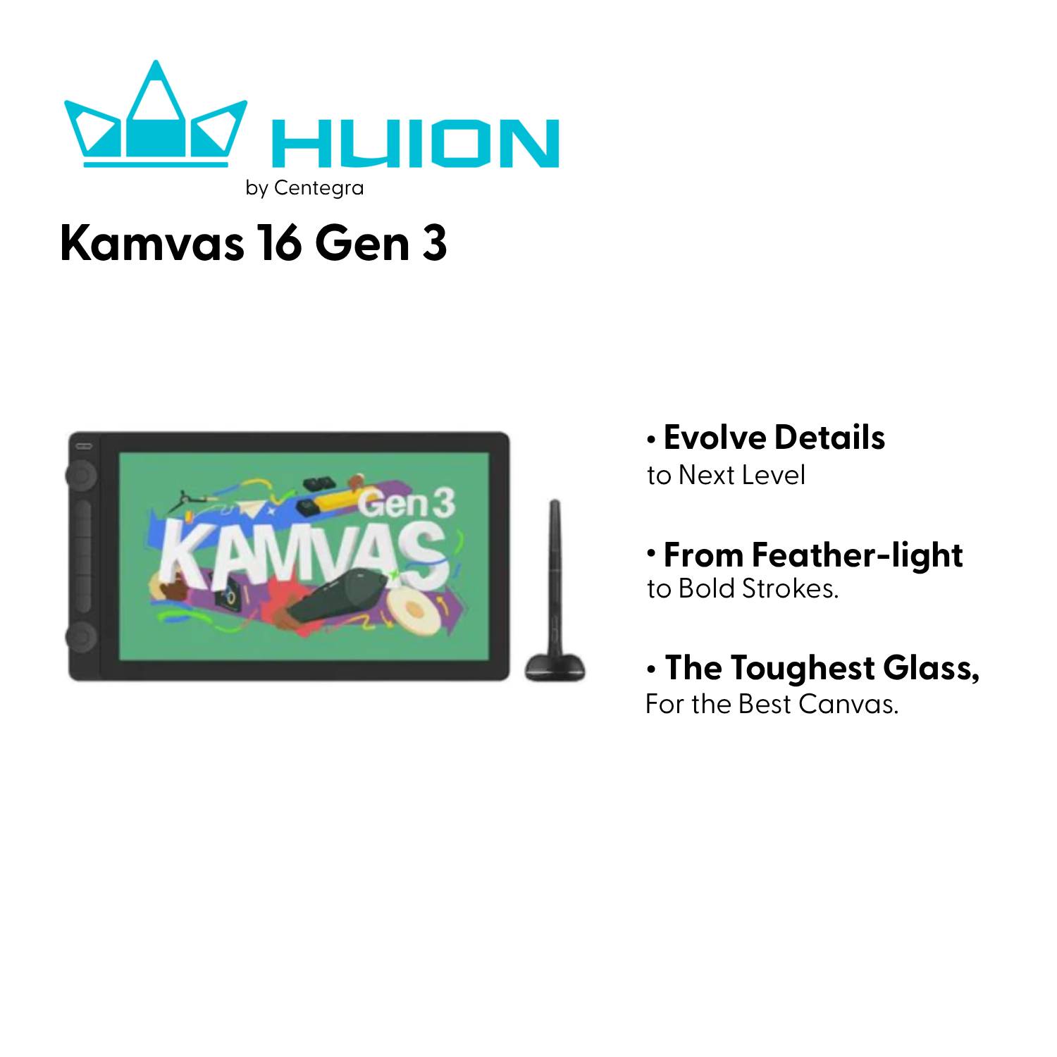 Make Progress, Make a Pro Kamvas 16 (Gen 3), The Best Match of Size and Resolution. The First Step in Drawing, The Beautiful Color. Ensuring Accurate Color Display.